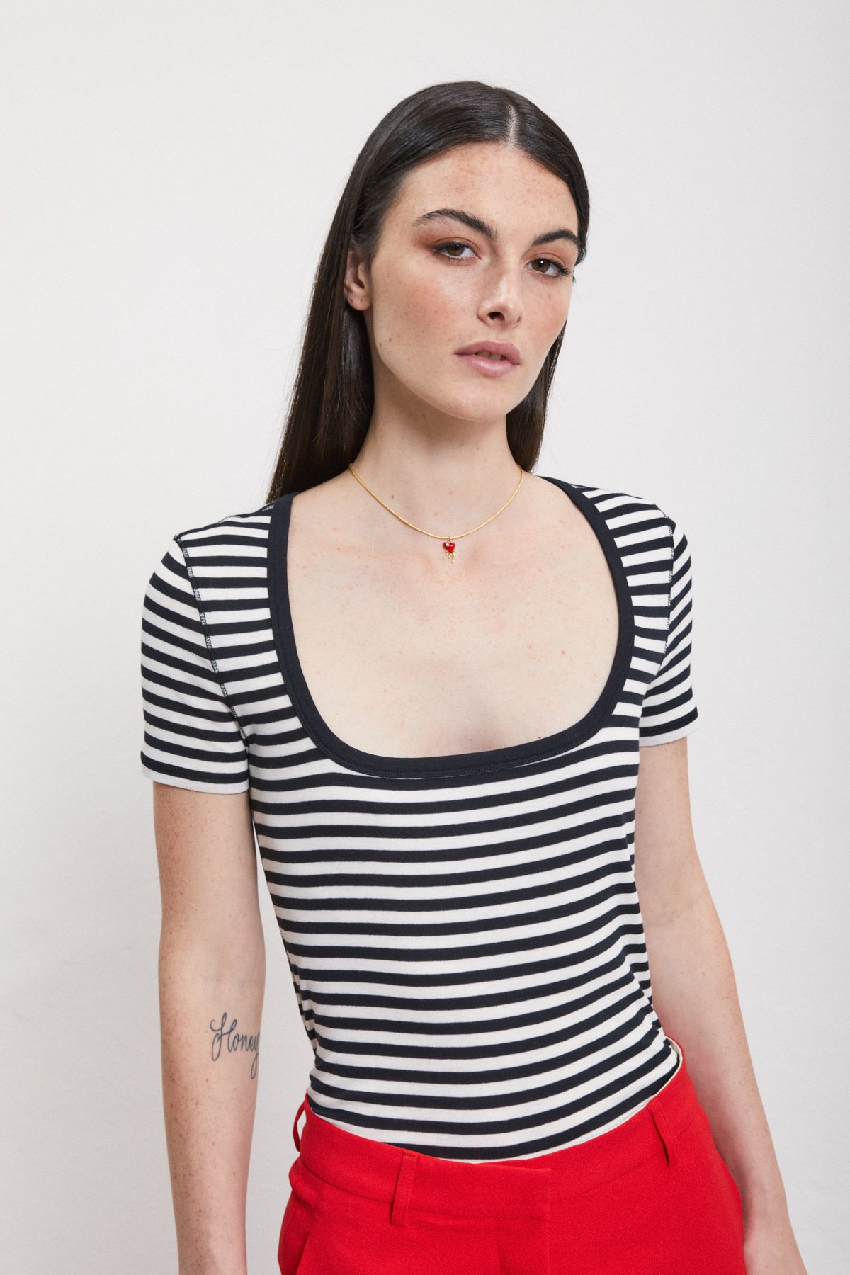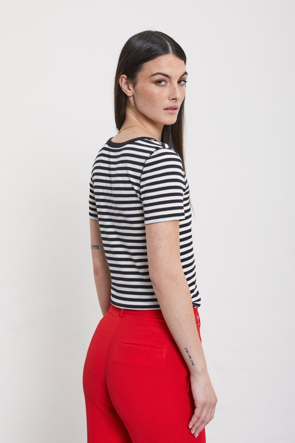 “100% Striped cotton T-shirt with rounded neck and half sleeve.”/>Cotton T-shirt {