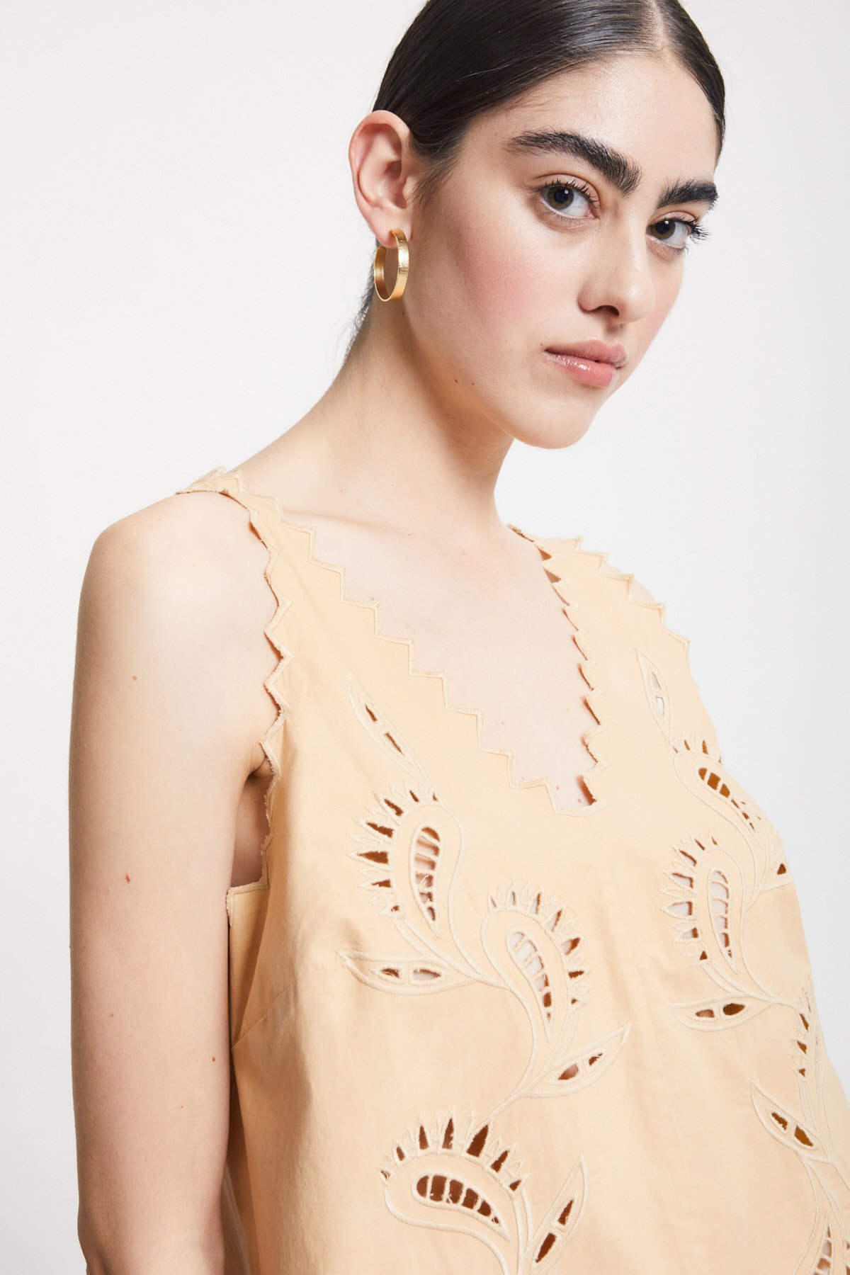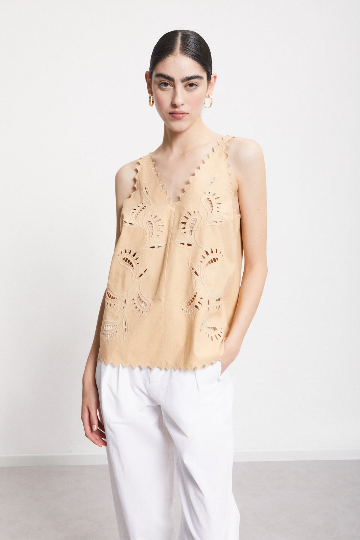 “100% Cotton top with cutwork embroidery and zigzag hem.”/>Cotton top with cutwork embroidery {