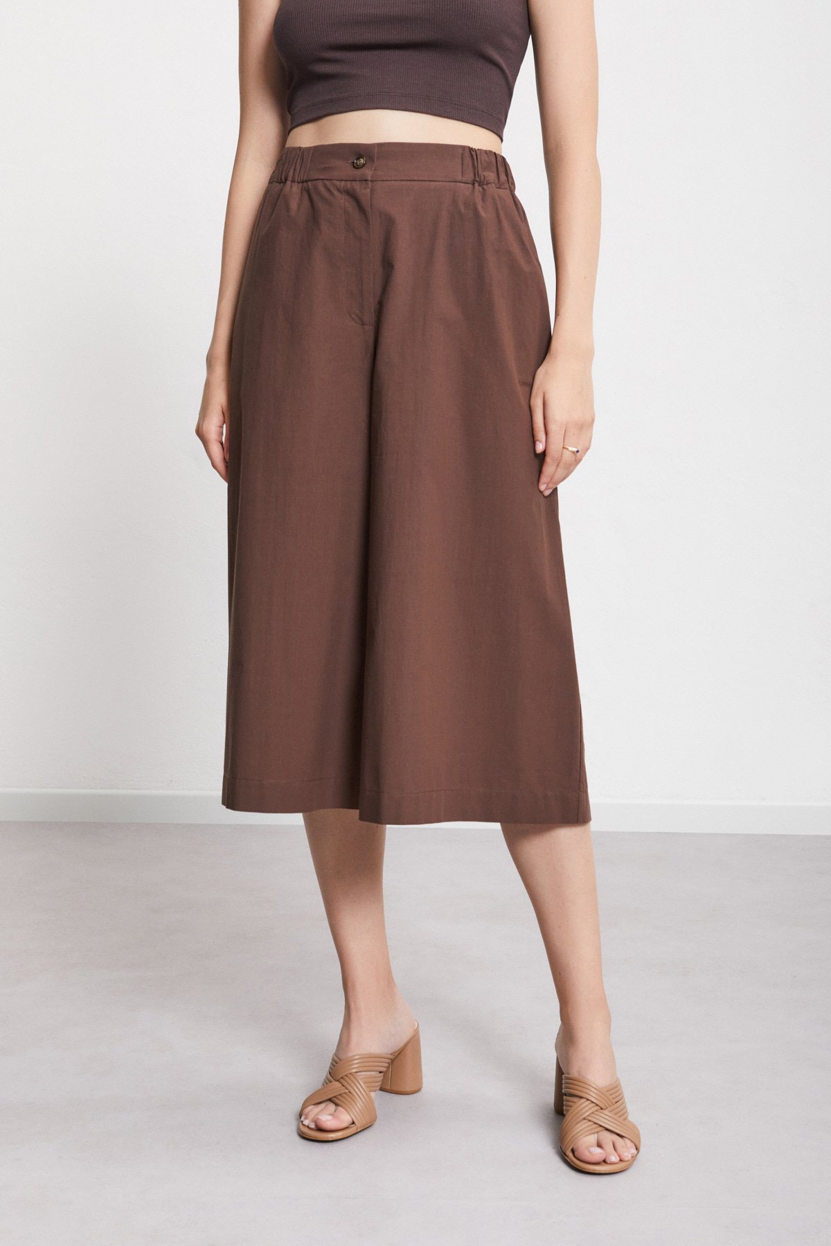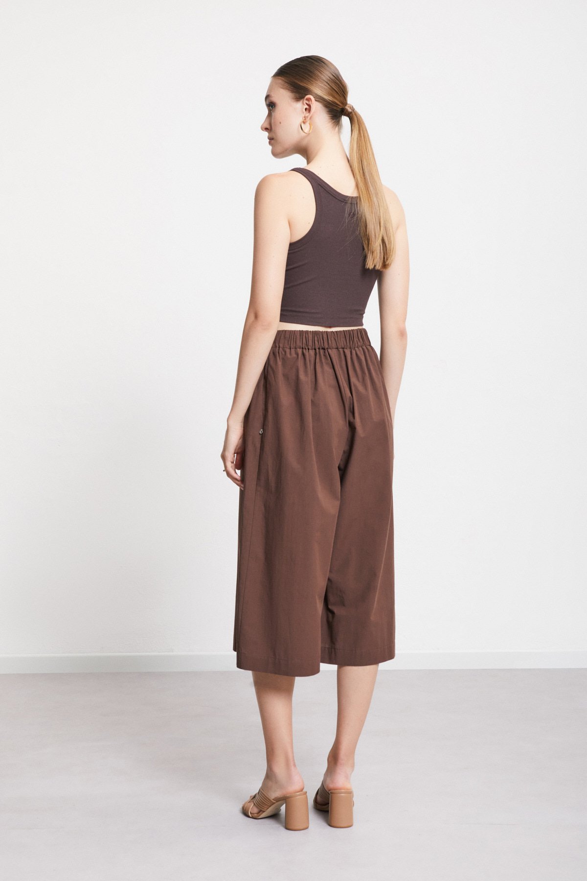“100% Poplin cropped trousers with elastic at the waist.”/>Poplin cropped trousers {