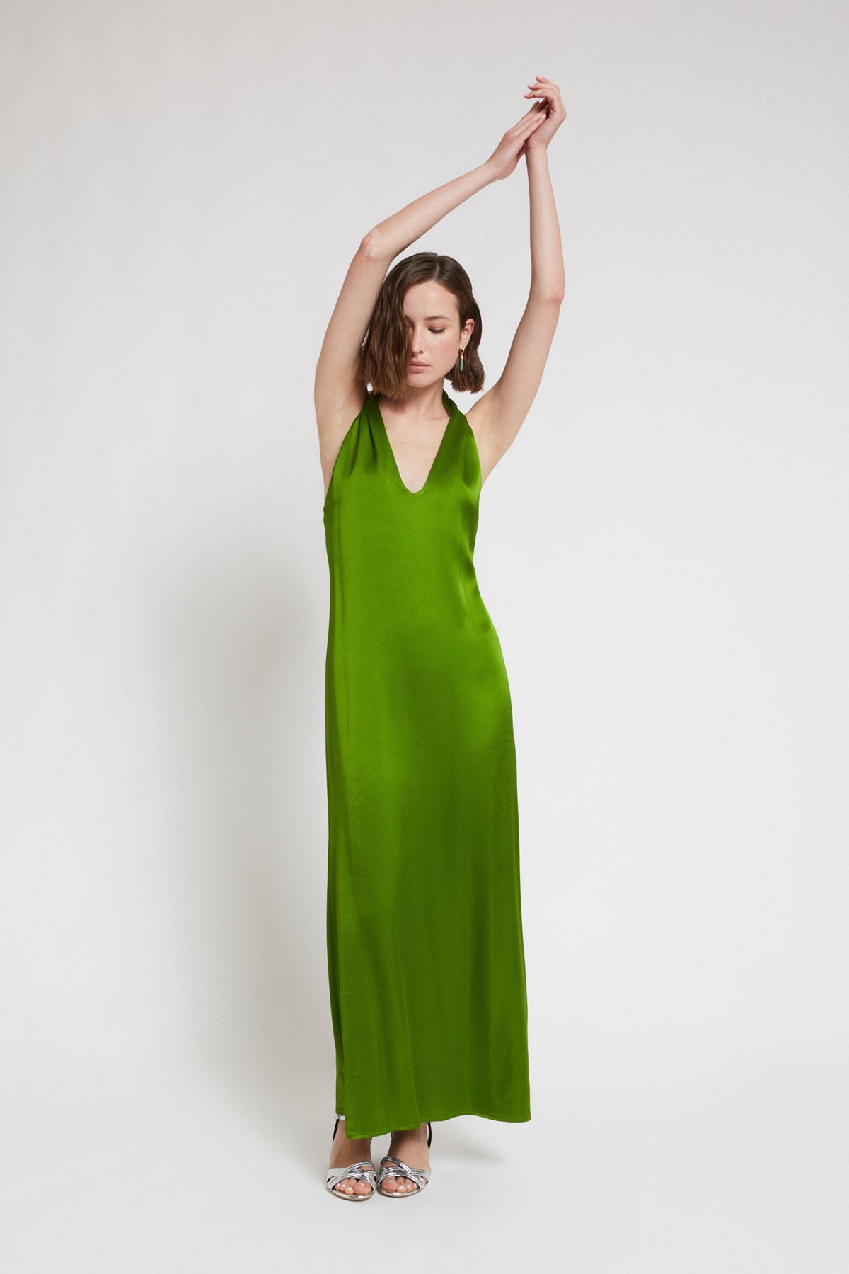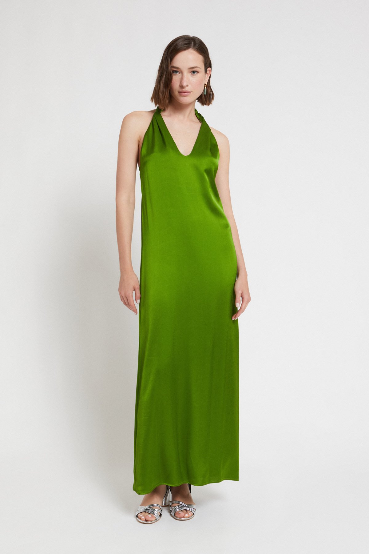 “100% Viscose flowy long dress with adjustable neckline.”/>Viscose long dress {