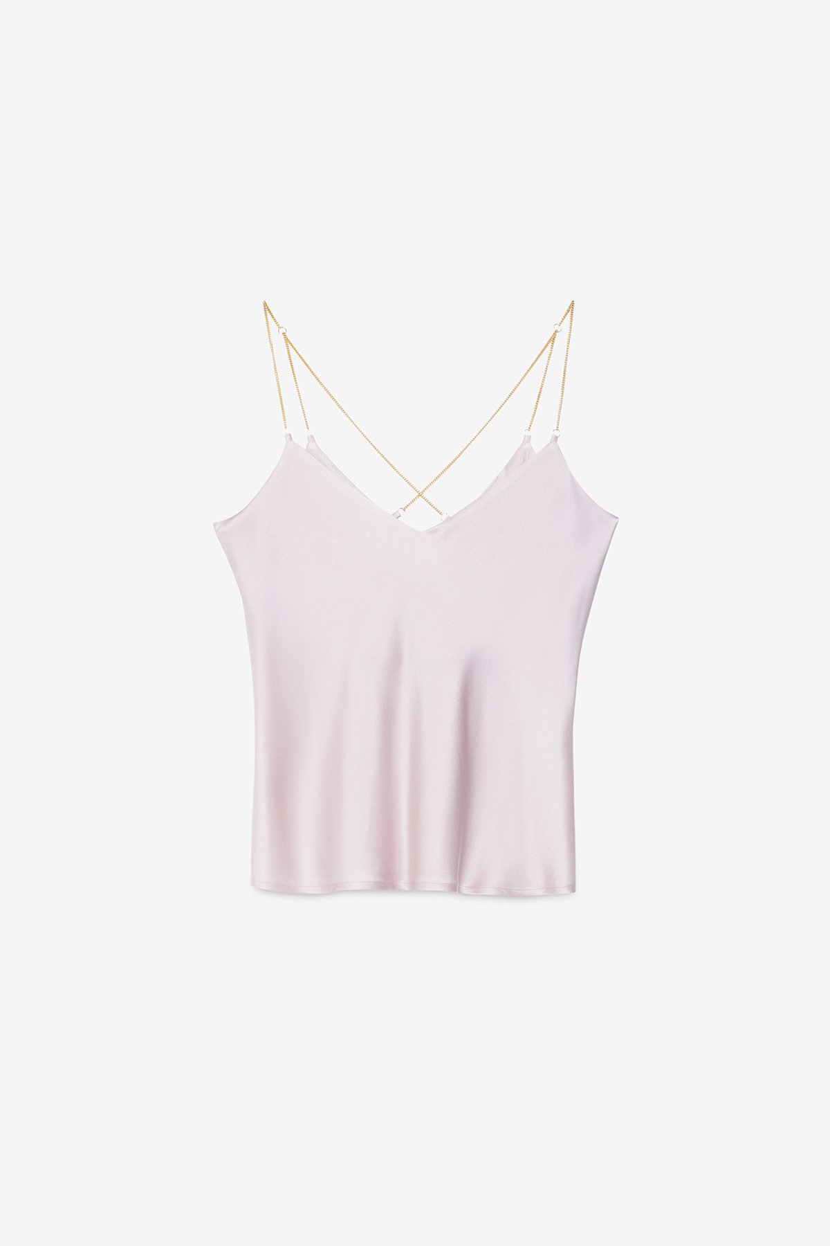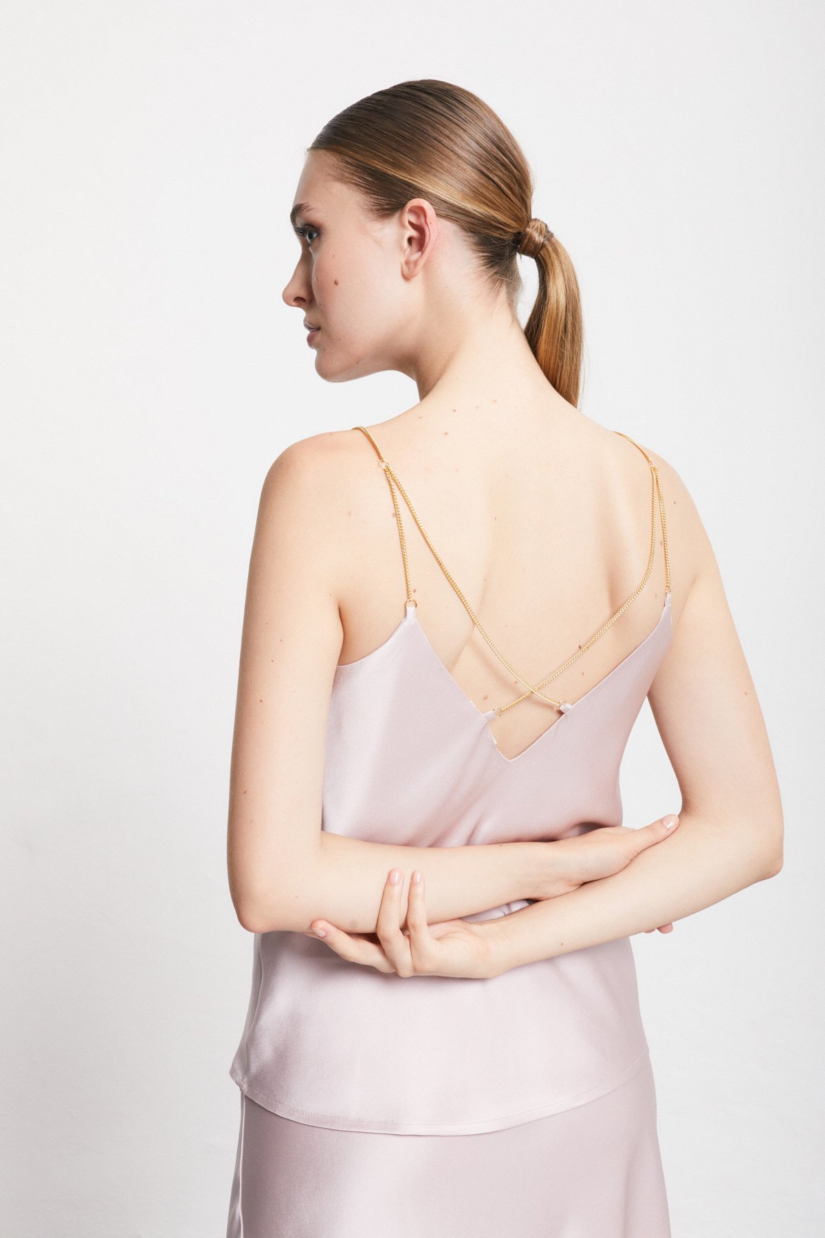 “100% Viscose flowy top with crisscrossed chain straps on the back.”/>Viscose top {